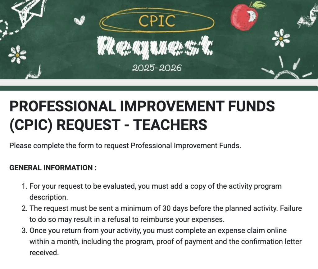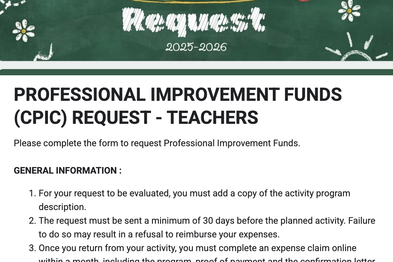 Professional Improvement Teachers 2025-2026 Perfectionnement professionnel des enseignants 2025-2026